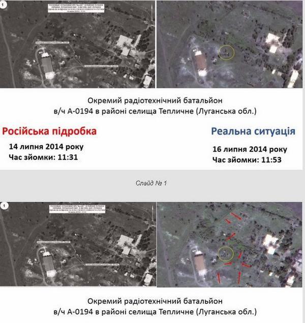 El 30 de julio el Servicio de Seguridad de Ucrania difundió imágenes por satélite que, supuestamente, contradecían el contenido de las fotos publicadas por Rusia, que evidencian la presencia de sistemas de misiles antiáereos ucranianos 'Buk' en la zona del siniestro del Boeing 777. De esta forma Ucrania quería demostrar que las fotos rusas no eran auténticas. En general, solo las dos primeras imágenes ucranianas coinciden con las rusas. Según el Ministerio ruso de Defensa, en parte de las fotos ucranianas obtenidas por satélite el tiempo de grabación no coincide con la imagen representada.
